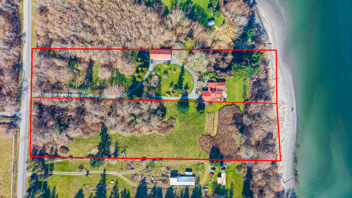 Welcome to an extraordinary waterfront retreat set on nearly 8 acres just minutes from the seaside village of Langley. This one-of-a-kind estate offers an inspiring blend of Northwest serenity and Southwest architectural character. With 388+/- feet of high-bank waterfront, the home captures sweeping views of Possession Sound, the Cascade Mountains, and passing marine life. Thoughtfully reimagined with artistic vision and craftsmanship, the residence features warm natural materials, hand-crafted details, and light-filled living spaces enhanced by expansive windows and skylights. The main home offers inviting gathering spaces, and unique features including a sauna, vaulted ceilings, and a striking fireplace designed for both ambiance and comfort. The kitchen is a true centerpiece, showcasing custom, local Pacific Yew woodwork & design that blends beauty with function. Outdoors, the property unfolds into a sanctuary of open pastures, and established gardens. A greenhouse, orchard, and former vineyard create opportunities for sustainable living and hobby farming, while abundant wildlife and bird species add to the sense of tranquility. Complementing the main residence is a substantial detached shop with a permitted apartment-ideal for guests, rental income, or multi-generational living. Private, picturesque, and rich with story, this is more than a home-it's a legacy property offering space, creativity, and connection to nature in one of Whidbey Island's most desirable locations.